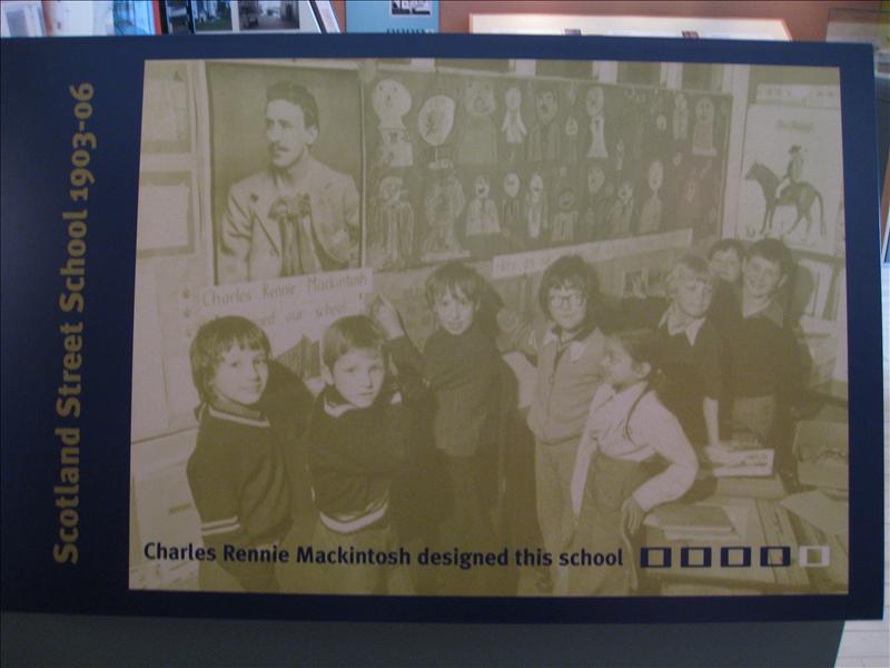 不免俗的還是得介紹學校的建築史及歷史,而且這個建築不但代表著麥金塔什的重要代表,也同時代表著蘇格藍教育的一部成長歷程,因此除了展出模型外,居然還有第一屆學生的照片....這一班應該都作古了吧