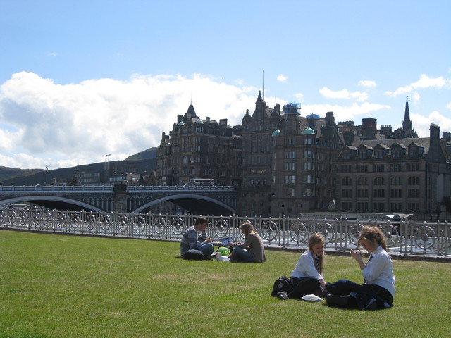 城市街景不曉得是不是因為台灣總會把學院風跟蘇格蘭格紋扯在一起的關係,總覺得多了一份學院風!就連坐在草皮上的學生們感覺都優雅許多,法國人都大辣辣地把東西亂丟一旁,然後就亂躺了起來,感覺就是太隨性~