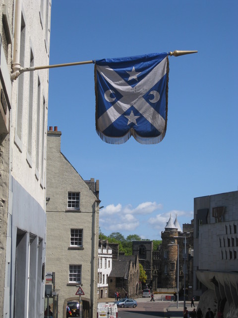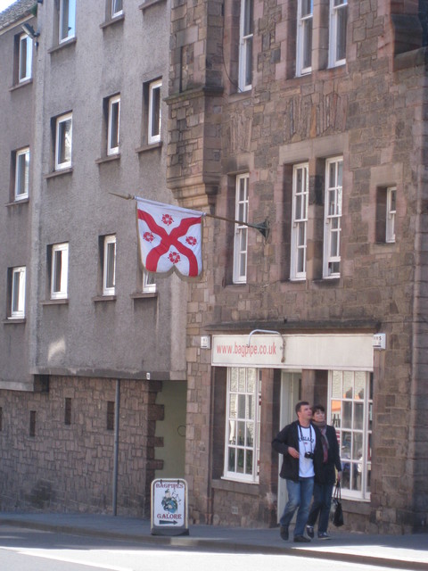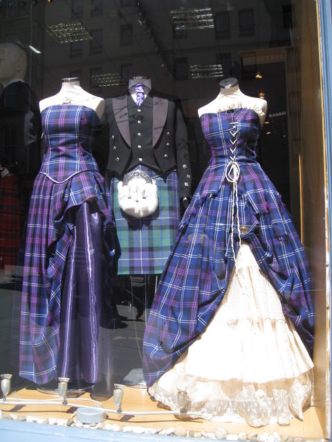我很喜歡歐洲古時的旗幟,那是一種家族精神或是皇室權威的表徵,蘇格蘭處處有掛旗幟,雖說在現代或許旗幟本身並非有像古代如此有意義,也只是一個"招牌",但整條街上幾乎家家都有旗幟,也是一種有趣的街景!在皇后大道上,我看見一間蘇格蘭傳統服裝訂製店,我只差點沒去訂一件照片右邊的禮服,實在太正了~好想要一件~